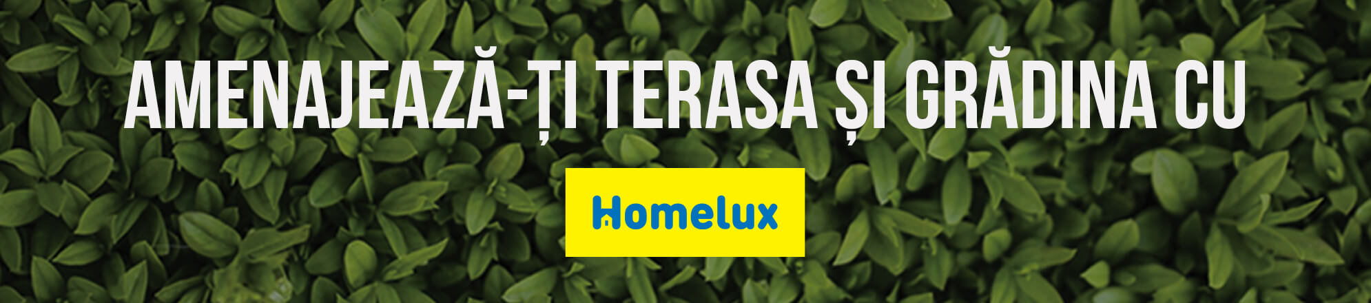Vrei sa-ti transformi terasa sau gradina intr-un loc confortabil, unde sa te relaxezi in fiecare zi si unde sa petreci pana in zori alaturi de familie si prieteni? Daca esti pe punctul de a da startul unui proiect de amenajare gradina sau terasa, atunci esti in locul potrivit. La Homelux te asteapta o gama diversificata de seturi de mobilier terasa si gradina, mobilier pentru balcon, balansoare, ghivece si jardiniere, umbrare si foisoare, dar si accesorii si decoratiuni pentru terasa si gradina.