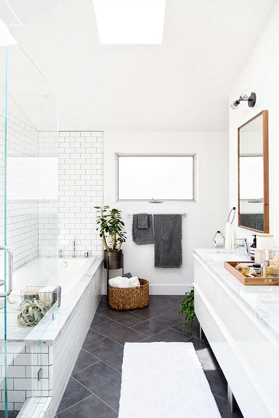 Baile lungi si inguste pot parea incomode, dar daca folosesti corect spatiul, le poti transforma intr-o incapere moderna si echilibrata. Iata cum poti face asta: