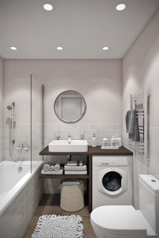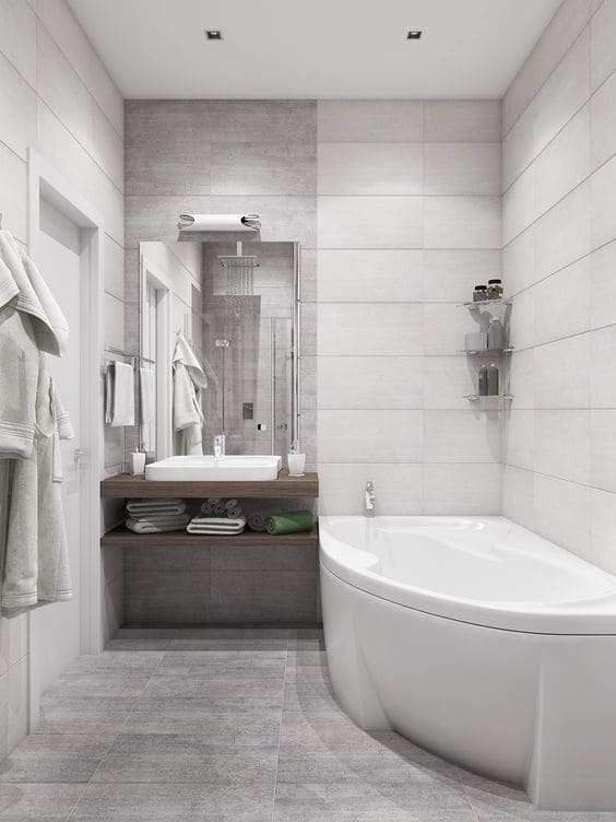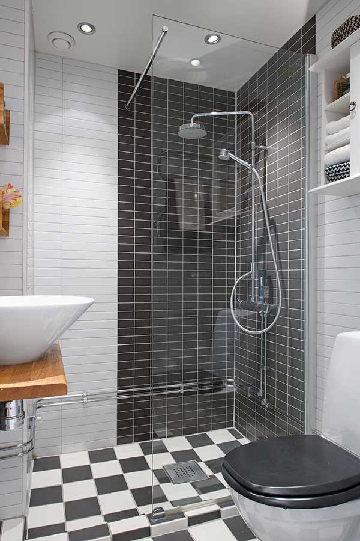 • Opteaza pentru un dus sau, daca iti doresti o baie mica cu cada, alege o cada pe colt pentru a nu bloca inutil spatiul.