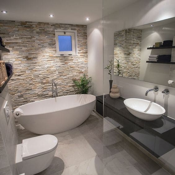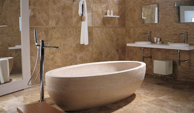 • Sunt ideale pentru bai spatioase sau atunci cand vrei sa creezi un contrast cu materiale calde precum lemnul sau piatra naturala.