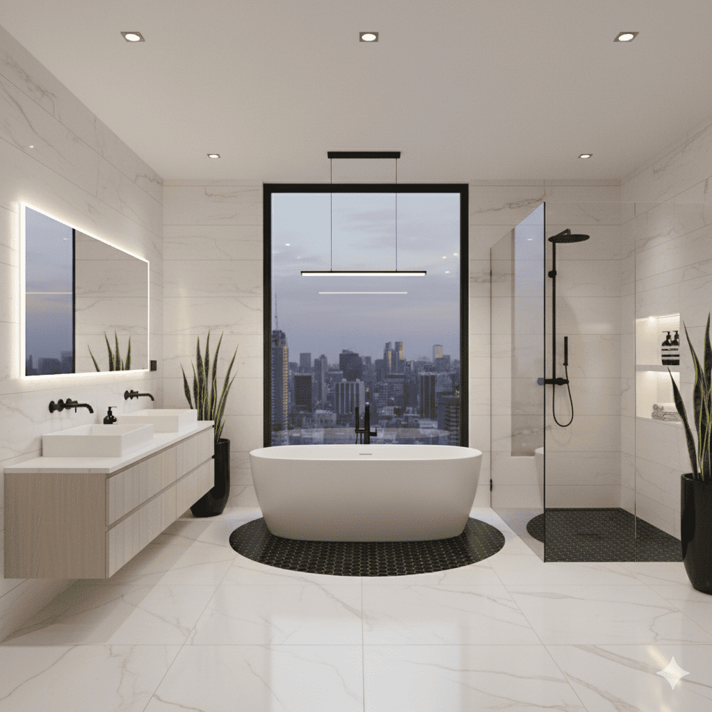 O baie luxoasa transforma rutina zilnica intr-o experienta premium. Este definita de materiale de inalta calitate, tehnologie moderna si un design spectaculos pe care il poti obtine cu ajutorul urmatoarelor elemente: