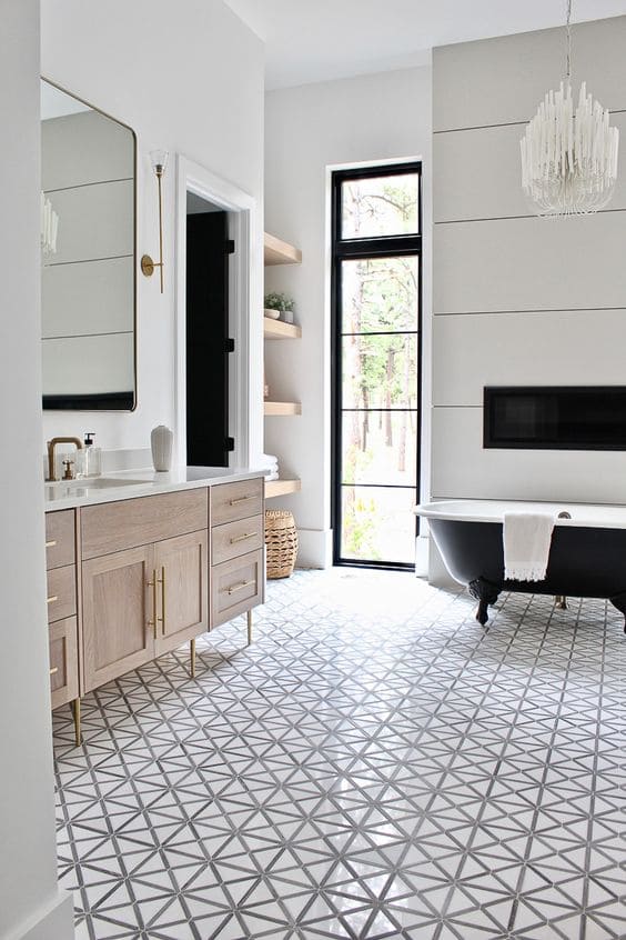 • Pardoseala cu modele geometrice sau mozaic colorat, pentru un efect vizual puternic.