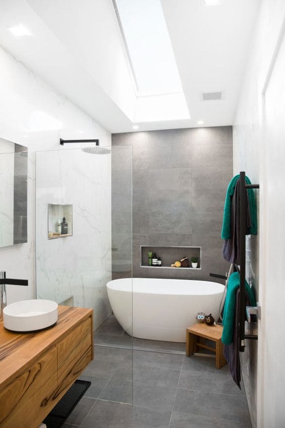 • Inlocuieste cada cu un dus walk-in din sticla transparenta, pentru a mari vizual incaperea.
