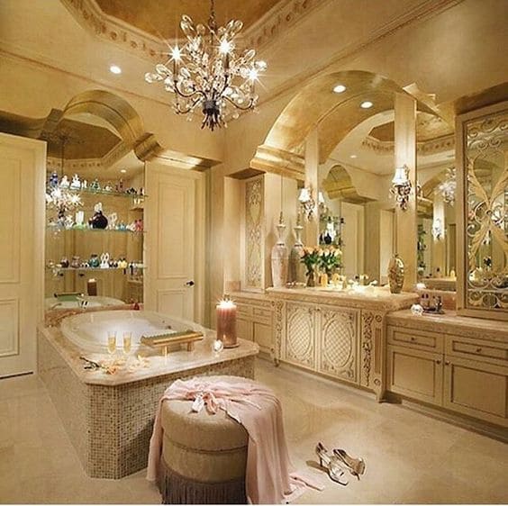 • Pardoseala cu un design luxuriant, precum marmura, travertinul sau gresia portelanata lucioasa.