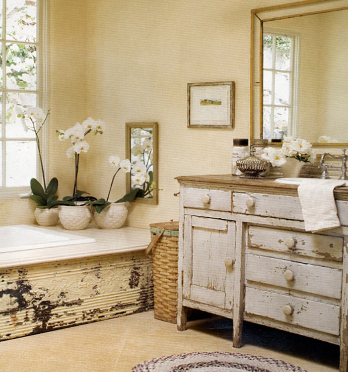 • Mobilier din lemn patinat sau cu aspect invechit, pentru autenticitate.