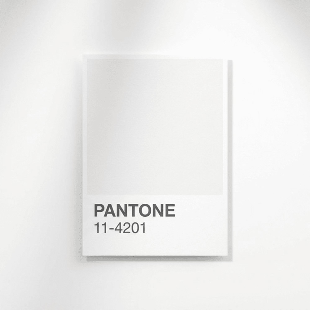 - Achizitioneaza mostre de vopsea PANTONE 11-4201 pentru a testa nuanta in lumina naturala a camerei.