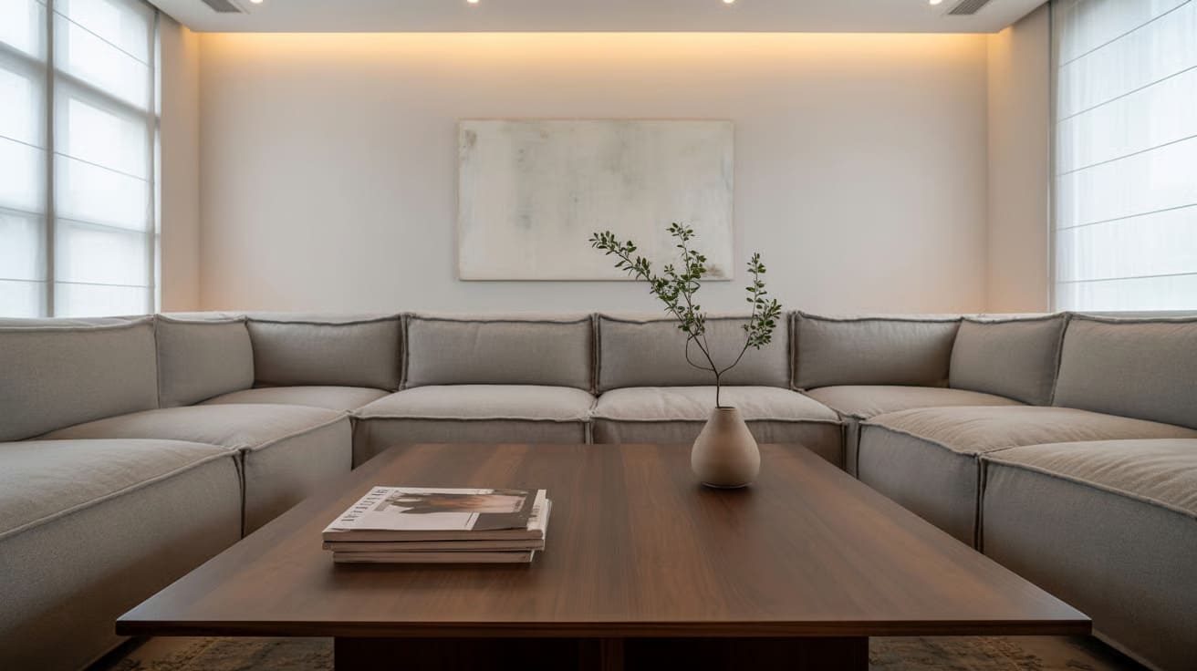 - Plaseaza coltarul de-a lungul unui perete lung pentru a crea o zona de relaxare si a pastra centrul camerei liber.