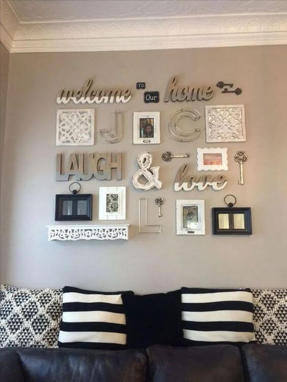 - Daca ai mai multe tablouri sau fotografii de marimi diferite si vrei sa le pui pe acelasi perete, sub forma unei galerii, alege sa faci acest lucru intr-un mod creativ, creand diverse forme cu acestea;
